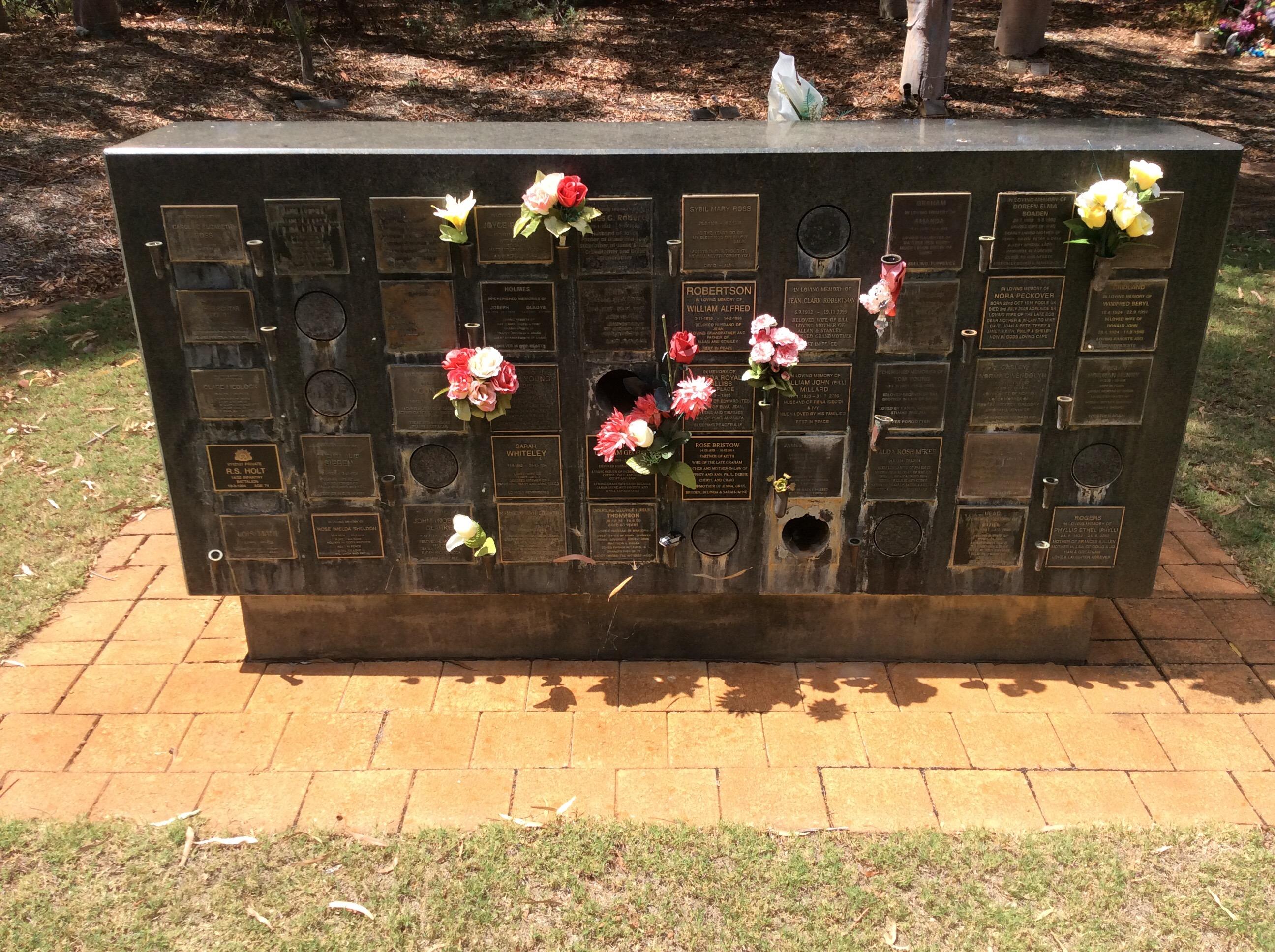 Area: Memorial Wall Wall / panel: Side: Row: Niche number: